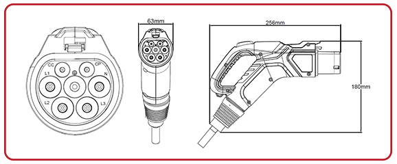 符合GB/T標準,為中國充電站提供模式4下的快速直流充電。設計了獨特的鎖扣,可防止插頭在充電過程中被拔出,從而保證安全性。